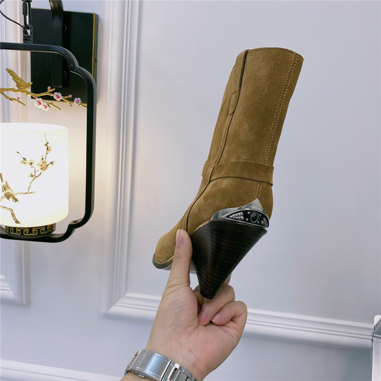 With a pointed toe design that adds a touch of elegance and a middle tube height that complements any look, these boots are a must-have. Choose from chic colors like khaki, gray, apricot, black leather, black suede, and white. With a heel height of 8cm, they are perfect for adding that extra lift to your ensemble while keeping comfort in mind.